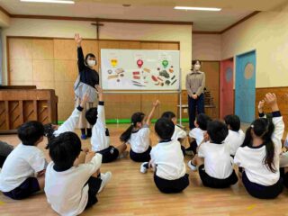 このたび、練馬区の保育園の栄養士さん2名が来てくださり、園児たちに楽しく栄養についてお話していただきました。