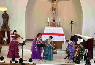 歌、バイオリン、ハープ、ピアノの本物の音色に包まれ、楽しみながら素敵な演奏を聴きました。
