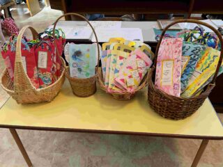 千歳飴袋は各クラス、心を込めて手作りをしています。